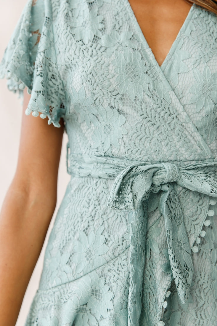 Hey pretty lady, you're causing quite a stir in our sweet, lace Cami dress! Featuring a faux wrap skirt, separate lace belt, on-trend ruffle hemline, pretty embroidered trim detailing, fluttery angel sleeves, partial lining and invisible zipper closure. Team it with delicate gold jewelry and nude heels for a look we are loving.