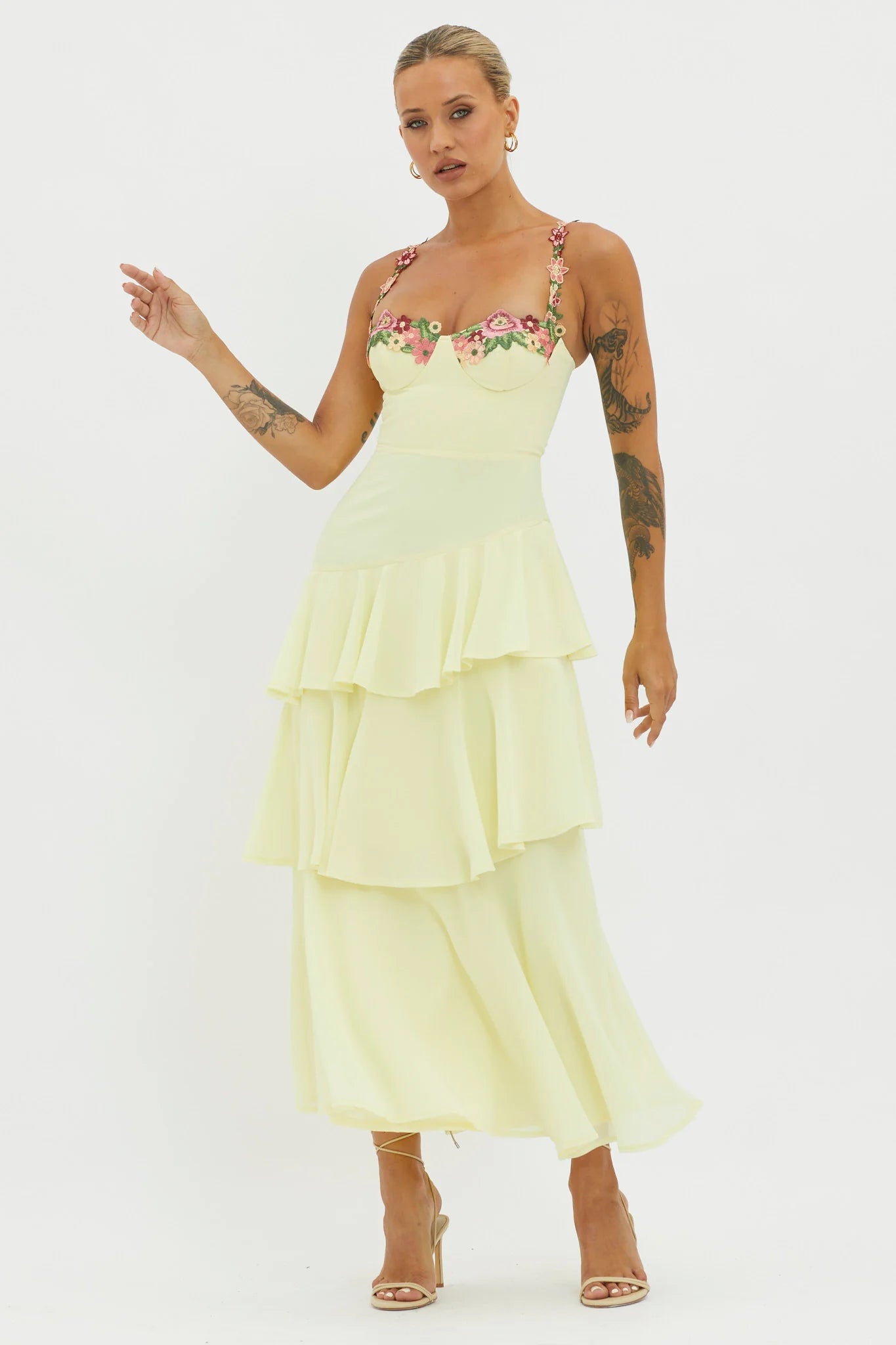 Heads will turn when you walk by in our gorgeous Rose Garden dress. We are in love with its pretty, floral applique trim and feminine, layered ruffles! Perfect for a garden wedding or flirty date night teamed with strappy, nude heels and a saddle bag for a dreamy look we are loving.